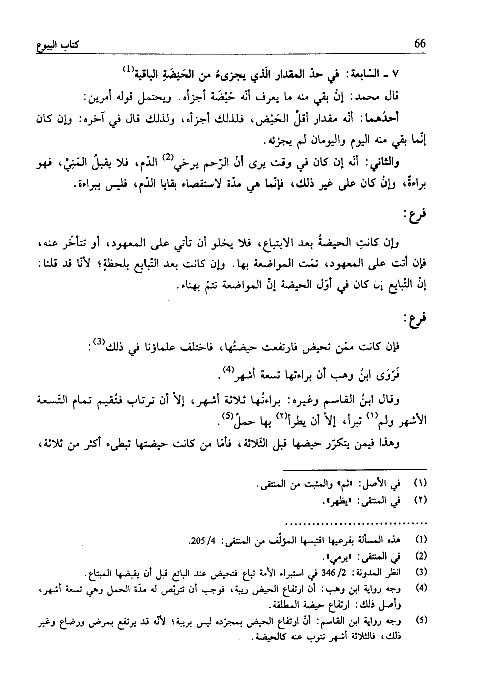 (¬3) انظر المدوّنة: 2/ 346 في استبراء الأُمَّة تباع فتحيض عند البائع قبل أنّ يقبضها المبتاع.