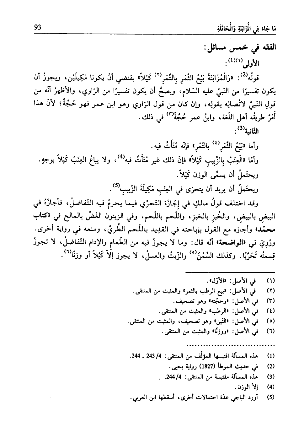 (¬3) هذه المسألة مقتبسة من المنتقى: 4/ 244.