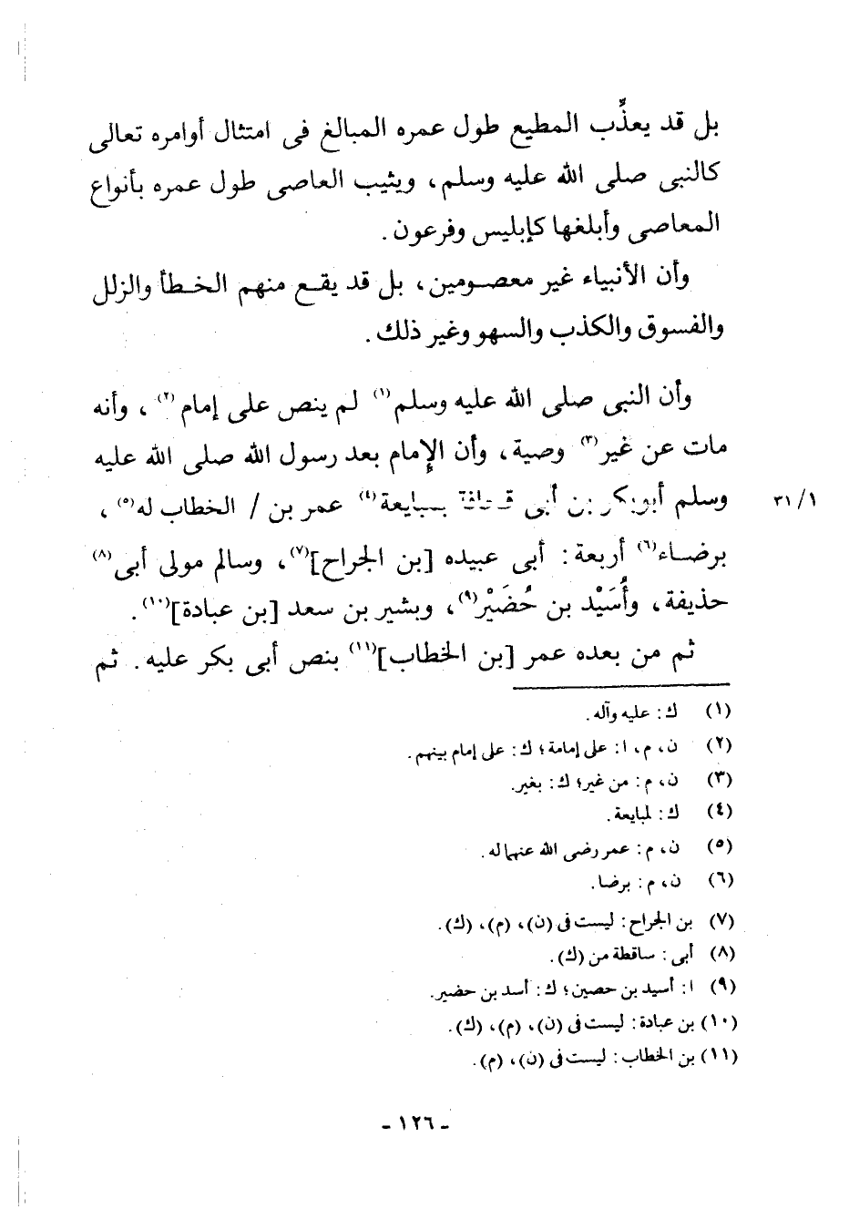 وَأَنَّ النَّبِيَّ - صَلَّى اللَّهُ عَلَيْهِ وَسَلَّمَ - (¬1) لَمْ يَنُصَّ عَلَى إِمَامٍ (¬2) ، وَأَنَّهُ مَاتَ عَنْ غَيْرِ (¬3) . وَصِيَّةٍ، وَأَنَّ الْإِمَامَ بَعْدَ رَسُولِ اللَّهِ - صَلَّى اللَّهُ عَلَيْهِ وَسَلَّمَ - أَبُو بَكْرِ بْنُ أَبِي قُحَافَةَ بِمُبَايَعَةِ (¬4) عُمَرَ بْنِ الْخَطَّابِ لَهُ (¬5) بِرِضَاءِ (¬6) أَرْبَعَةٍ: أَبِي عُبَيْدَةَ [بْنِ الْجَرَّاحِ] (¬7) ، وَسَالِمٍ مَوْلَى أَبِي (¬8) حُذَيْفَةَ، وَأُسَيْدِ بْنِ حُضَيْرٍ (¬9) ، وَبَشِيرِ بْنِ سَعْدِ [بْنِ عُبَادَةَ] (¬10) .