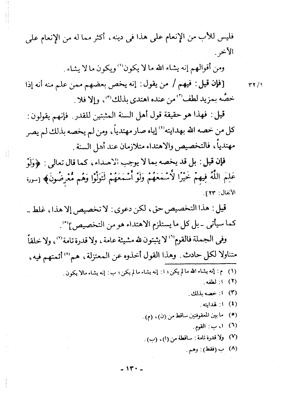 (¬1) م: إِنَّهُ يَشَاءُ اللَّهُ مَا لَمْ يَكُنْ؛ أ: إِنَّهُ يَشَاءُ مَا لَمْ يَكُنْ؛ ب: إِنَّهُ يَشَاءُ مَا لَا يَكُونُ.