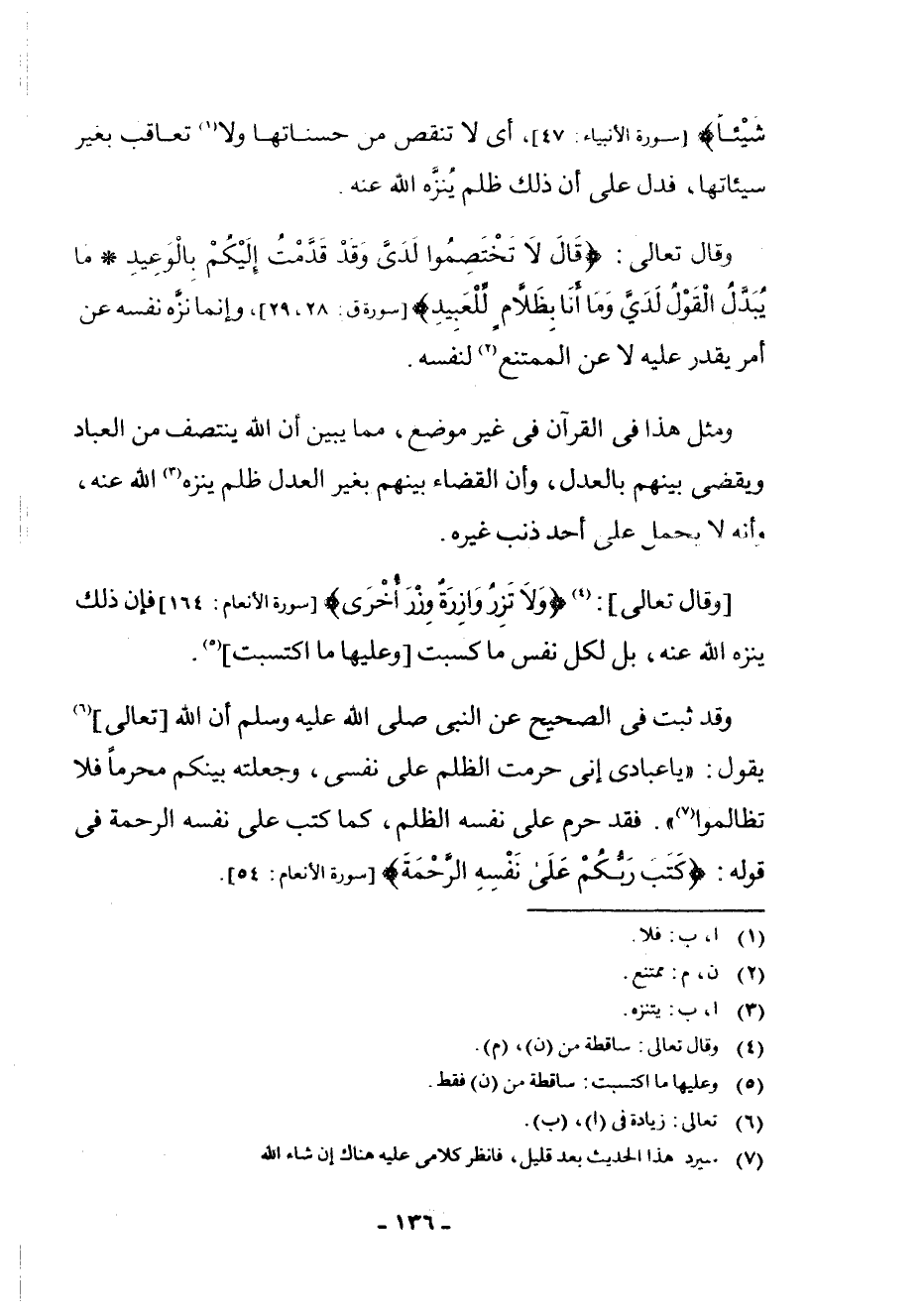 وَقَالَ تَعَالَى: (¬4) {وَلَا تَزِرُ وَازِرَةٌ وِزْرَ أُخْرَى} [سُورَةُ الْأَنْعَامِ: 164] ، فَإِنَّ ذَلِكَ يُنَزَّهُ اللَّهَ عَنْهُ، بَلْ لِكُلِّ نَفْسٍ مَا كَسَبَتْ، [وَعَلَيْهَا مَا اكْتَسَبَتْ] (¬5) .