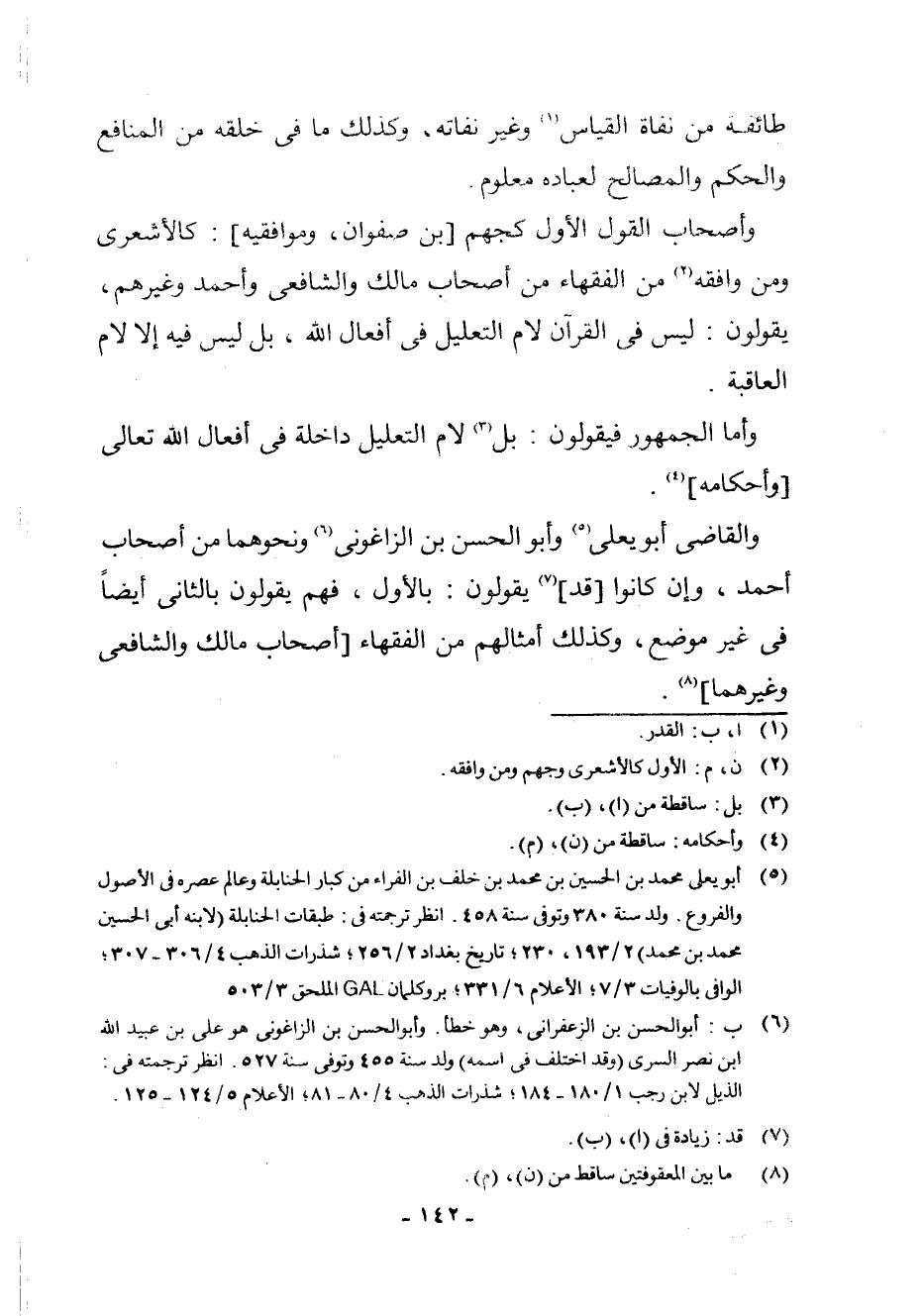 (¬6) ب: أَبُو الْحَسَنِ بْنُ الزَّعْفَرَانِيِّ، وَهُوَ خَطَأٌ. وَأَبُو الْحَسَنِ بْنُ الزَّاغُونِيِّ هُوَ عَلِيُّ بْنُ عُبَيْدِ اللَّهِ بْنِ نَصْرٍ السِّرِّيُّ (وَقَدِ اخْتُلِفَ فِي اسْمِهِ) وُلِدَ سَنَةَ 455 وَتُوُفِّيَ سَنَةَ 527. انْظُرْ تَرْجَمَتَهُ فِي الذَّيْلِ لِابْنِ رَجَبٍ 1/180 - 184 ; شَذَرَاتِ الذَّهَبِ 4/80 - 81 ; الْأَعْلَامِ 5/124 - 125.