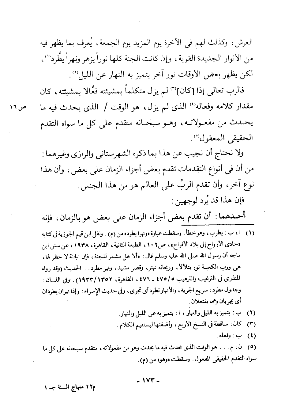(¬5) ن، م: هُوَ الْوَقْتَ الَّذِي يُحْدِثُ فِيهِ مَا يُحْدِثُ وَهُوَ مِنْ مَفْعُولَاتِهِ، مُتَقَدِّمٌ سُبْحَانَهُ عَلَى كُلِّ مَا سِوَاهُ التَّقَدُّمَ الْحَقِيقِيَّ الْمَفْعُولَ. وَسَقَطَتْ " وَهُوَ " مِنْ (م) .