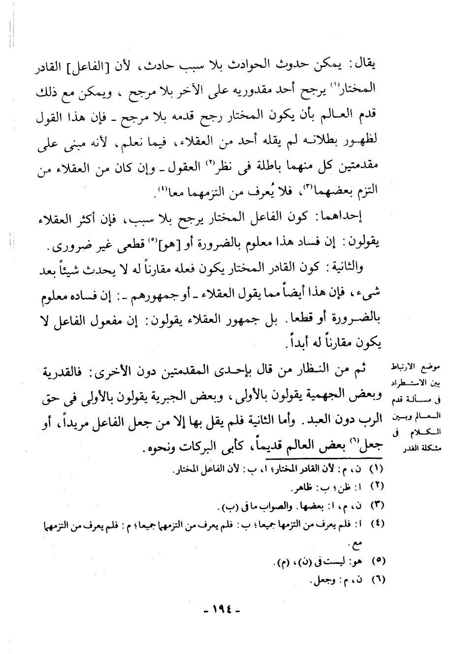 [موضع الارتباط بين الاستطراد في مسألة قدم العالم وبين الكلام في مشكلة القدر]