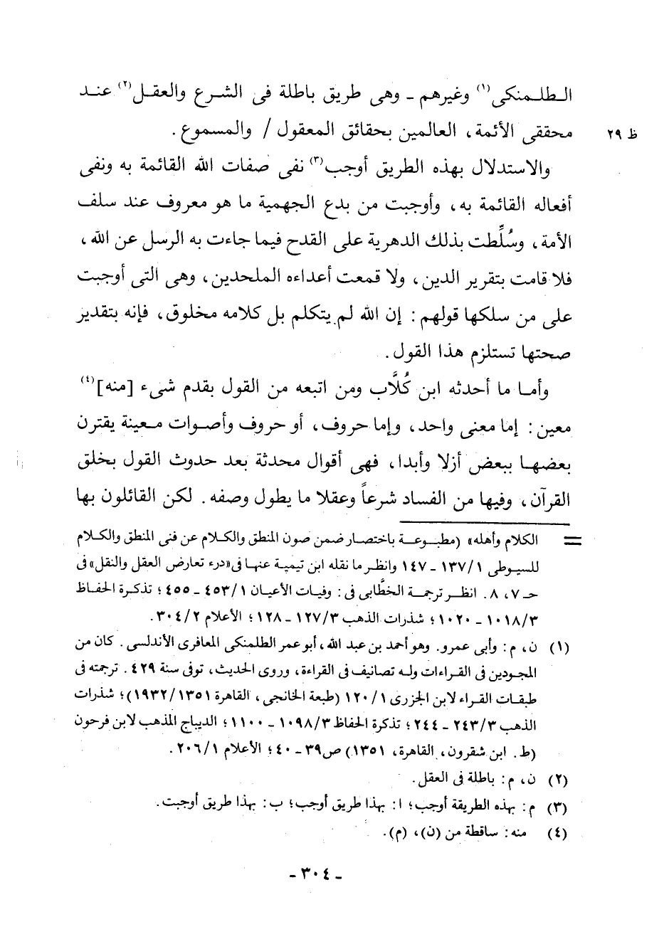 الطَّلَمَنْكِيِّ (¬1) . وَغَيْرِهِمْ، وَهِيَ طَرِيقَةٌ بَاطِلَةٌ فِي الشَّرْعِ وَالْعَقْلِ (¬2) عِنْدَ مُحَقِّقِي الْأَئِمَّةِ الْعَالِمِينَ بِحَقَائِقِ الْمَعْقُولِ وَالْمَسْمُوعِ.