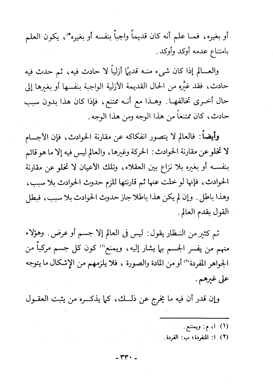 أَوْ بِغَيْرِهِ، فَمَا عُلِمَ أَنَّهُ كَانَ قَدِيمًا وَاجِبًا بِنَفْسِهِ أَوْ بِغَيْرِهِ *) (¬1) يَكُونُ الْعِلْمُ بِامْتِنَاعِ عَدَمِهِ أَوْكَدَ وَأَوْكَدَ.