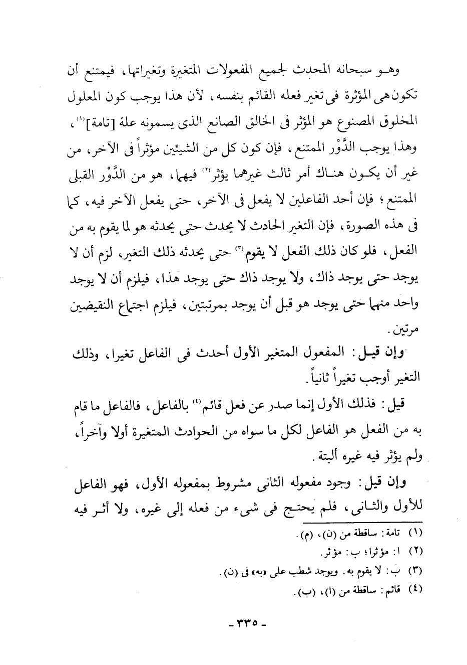 وَإِنْ قِيلَ: الْمَفْعُولُ الْمُتَغَيِّرُ الْأَوَّلُ أَحْدَثَ فِي الْفَاعِلِ تَغَيُّرًا، وَذَلِكَ التَّغَيُّرُ أَوْجَبَ تَغَيُّرًا ثَانِيًا 0