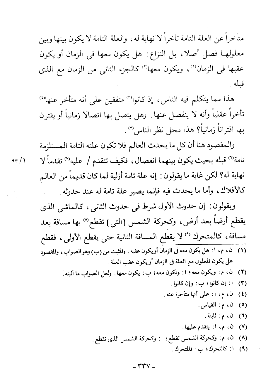 (¬1) ن، م، ا،: هَلْ يَكُونُ مَعَهُ فِي الزَّمَانِ أَوْ يَكُونُ عَقِبَهُ. وَالْمُثْبَتُ مِنْ (ب) وَهُوَ الصَّوَابُ، وَالْمَقْصُودُ هَلْ يَكُونُ الْمَعْلُولُ مَعَ الْعِلَّةِ فِي الزَّمَانِ أَوْ يَكُونُ عَقِبَ الْعِلَّةِ.
