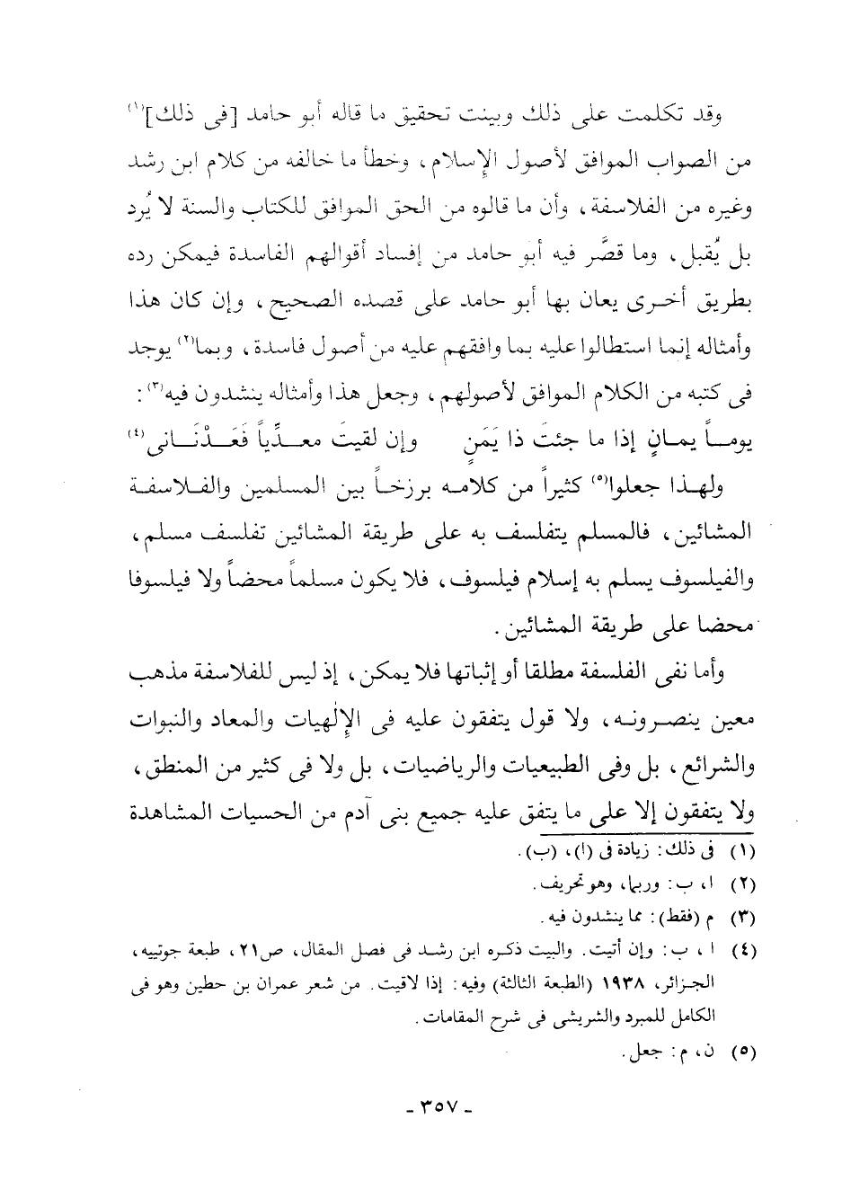 (¬4) ا، ب: وَإِنْ أَتَيْتَ. وَالْبَيْتُ ذَكَرَهُ ابْنُ رُشْدٍ فِي فَصْلِ الْمَقَالِ، ص [0 - 9] 1، طَبْعَةُ جُوتْيِيهْ، الْجَزَائِرِ، 1938 (الطَّبْعَةُ الثَّالِثَةُ) وَفِيهِ: إِذَا لَاقَيْتَ. مِنْ شِعْرِ عِمْرَانَ بْنِ حِطِّينَ وَهُوَ فِي الْكَامِلِ لِلْمُبَرِّدِ وَالشَّرِيشِيِّ فِي شَرْحِ الْمَقَامَاتِ.