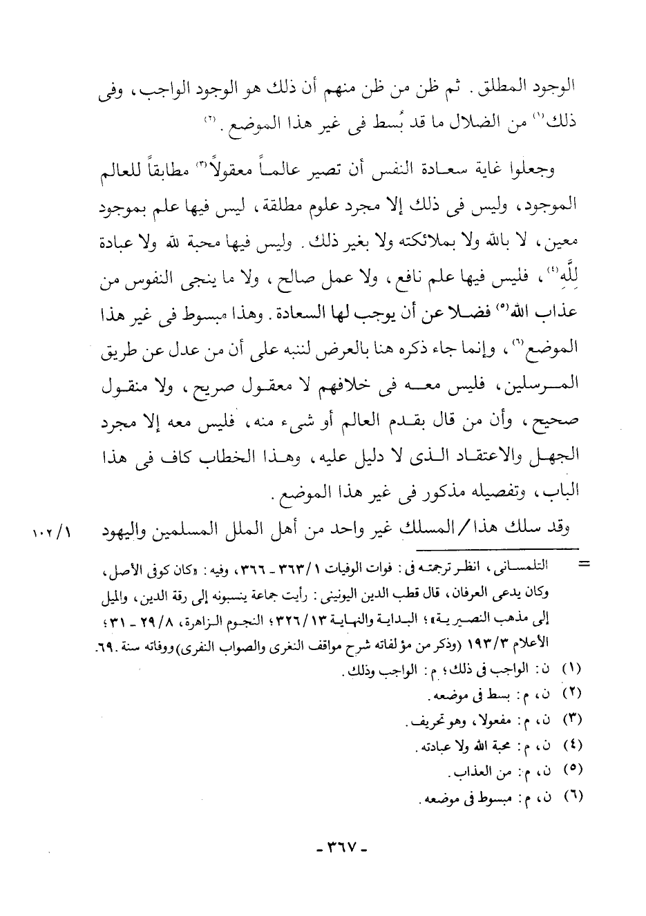 الْوُجُودُ الْمُطْلَقُ. ثُمَّ ظَنَّ مَنْ ظَنَّ مِنْهُمْ أَنَّ ذَلِكَ هُوَ الْوُجُودُ الْوَاجِبُ، وَفِي ذَلِكَ (¬1) مِنَ الضَّلَالِ مَا قَدْ بُسِطَ فِي غَيْرِ هَذَا الْمَوْضِعِ (¬2) .