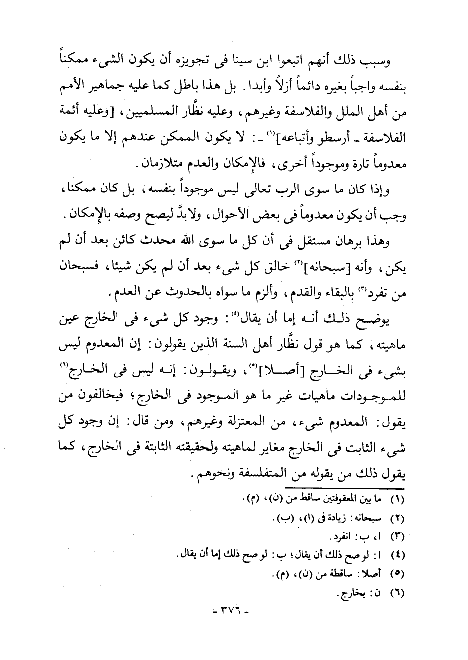 وَإِذَا كَانَ مَا سِوَى الرَّبِّ تَعَالَى لَيْسَ مَوْجُودًا بِنَفْسِهِ، بَلْ كَانَ مُمْكِنًا، وَجَبَ أَنْ يَكُونَ مَعْدُومًا فِي بَعْضِ الْأَحْوَالِ، وَلَا بُدَّ لِيَصِحَّ وَصْفُهُ بِالْإِمْكَانِ.