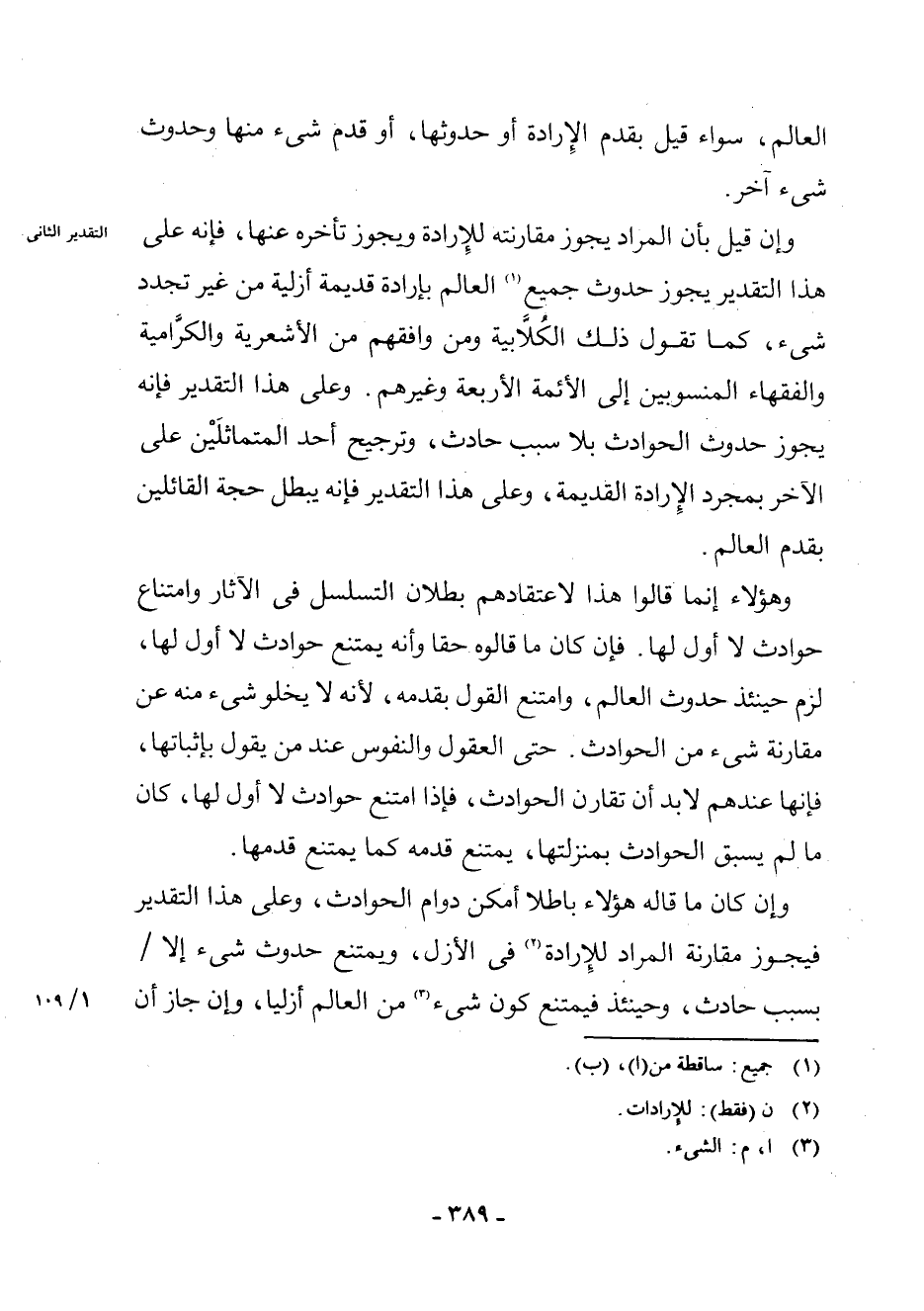 الْعَالَمِ، سَوَاءٌ قِيلَ بِقِدَمِ الْإِرَادَةِ أَوْ حُدُوثِهَا، أَوْ قِدَمِ شَيْءٍ مِنْهَا وَحُدُوثٍ شَيْءٍ آخَرَ.