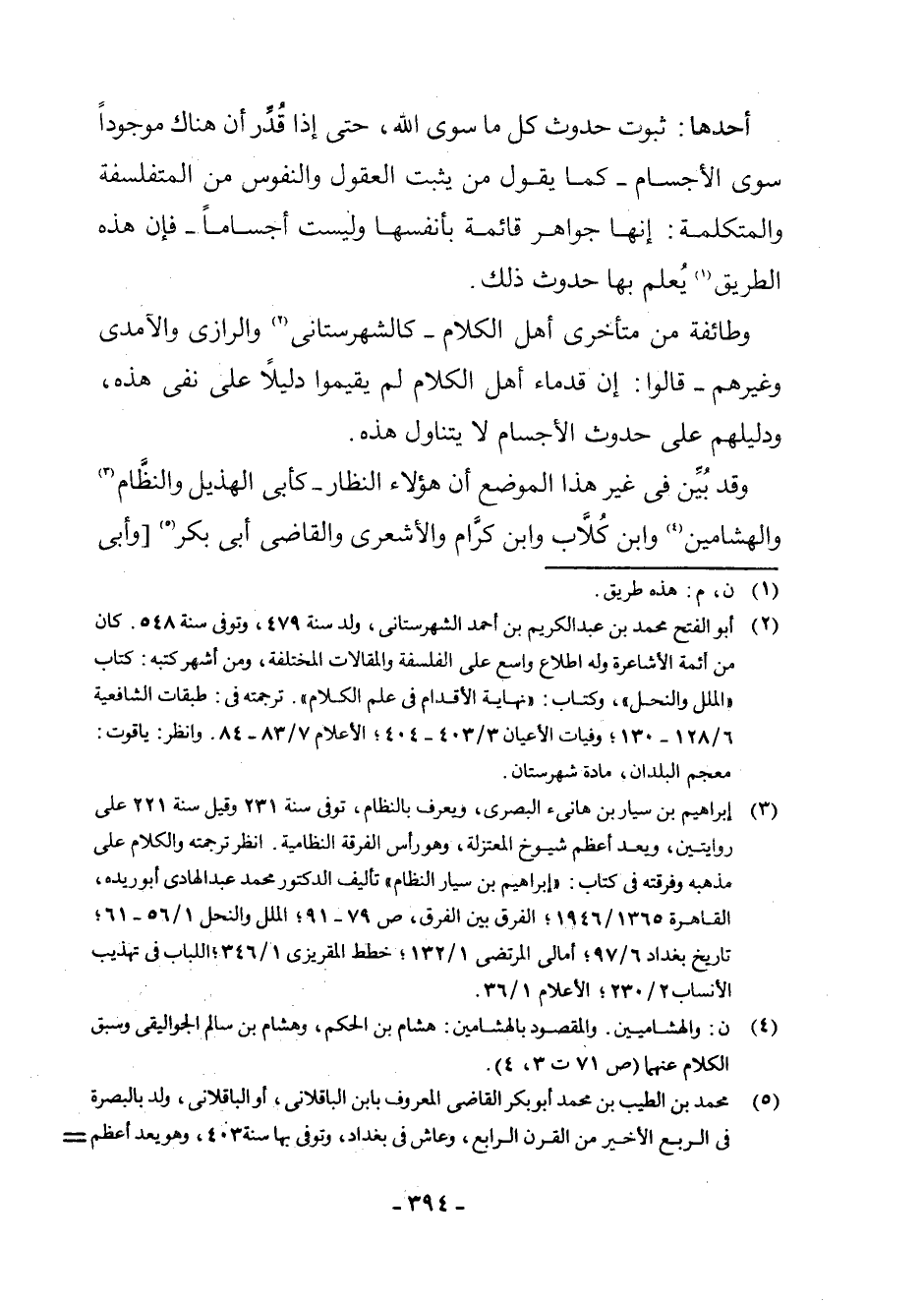 (¬4) ن: وَالْهِشَامِيِّينَ. وَالْمَقْصُودُ بِالْهِشَامَيْنِ: هِشَامُ بْنُ الْحَكَمِ، وَهِشَامُ بْنُ سَالِمٍ الْجَوَالِيقِيُّ وَسَبَقَ الْكَلَامُ عَنْهُمَا (ص 71 ت [0 - 9] ، 4) .