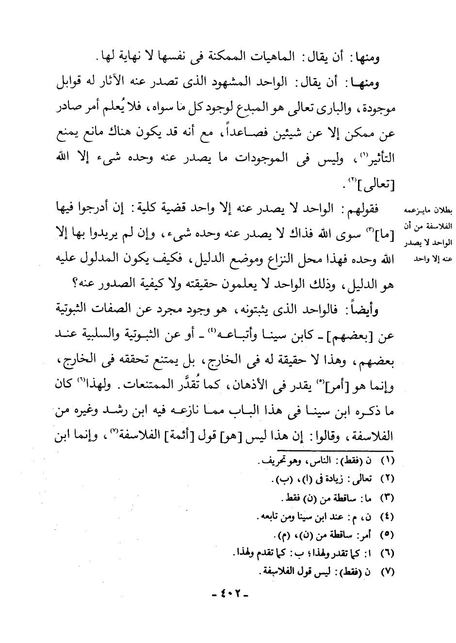 (¬7) ن (فَقَطْ) : لَيْسَ قَوْلَ الْفَلَاسِفَةِ.