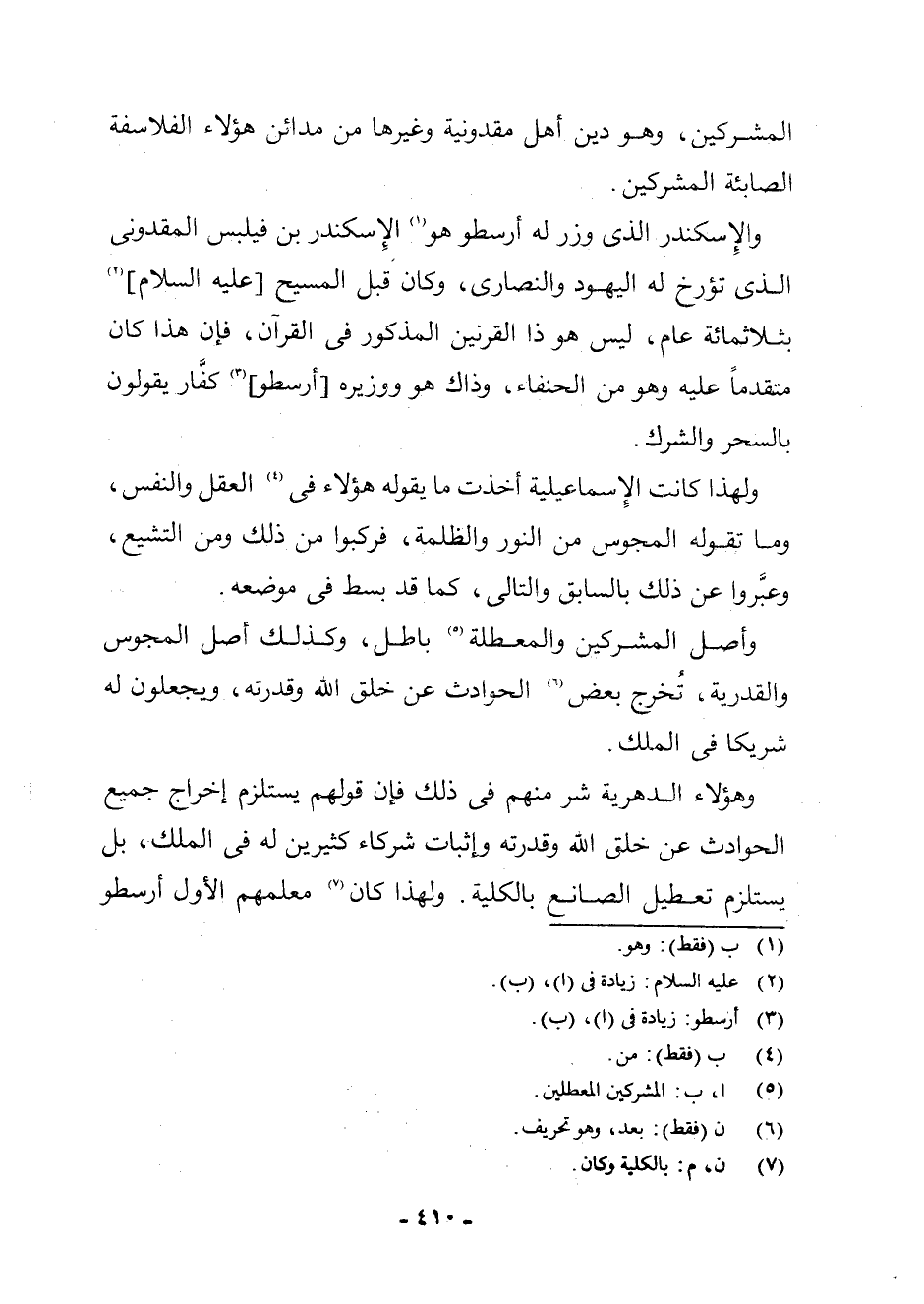 الْمُشْرِكِينَ، وَهُوَ دِينُ أَهْلِ مَقْدُونِيَّةَ وَغَيْرِهَا مِنْ مَدَائِنِ هَؤُلَاءِ الْفَلَاسِفَةِ الصَّابِئَةِ الْمُشْرِكِينَ.