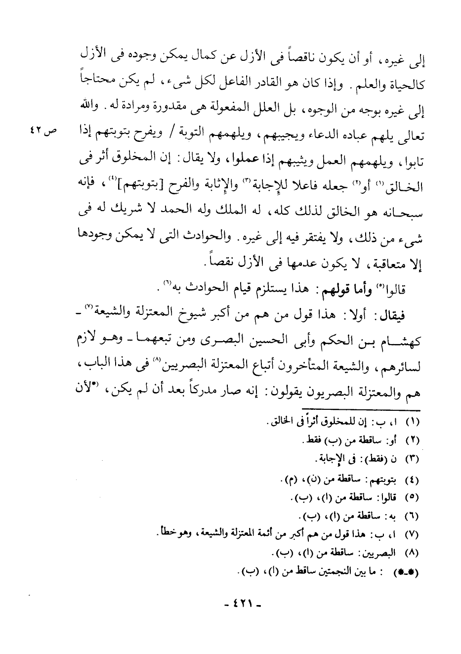 (¬7) ا، ب: هَذَا قَوْلُ مَنْ هُمْ أَكْبَرُ مِنْ أَئِمَّةِ الْمُعْتَزِلَةِ وَالشِّيعَةِ، وَهُوَ خَطَأٌ.