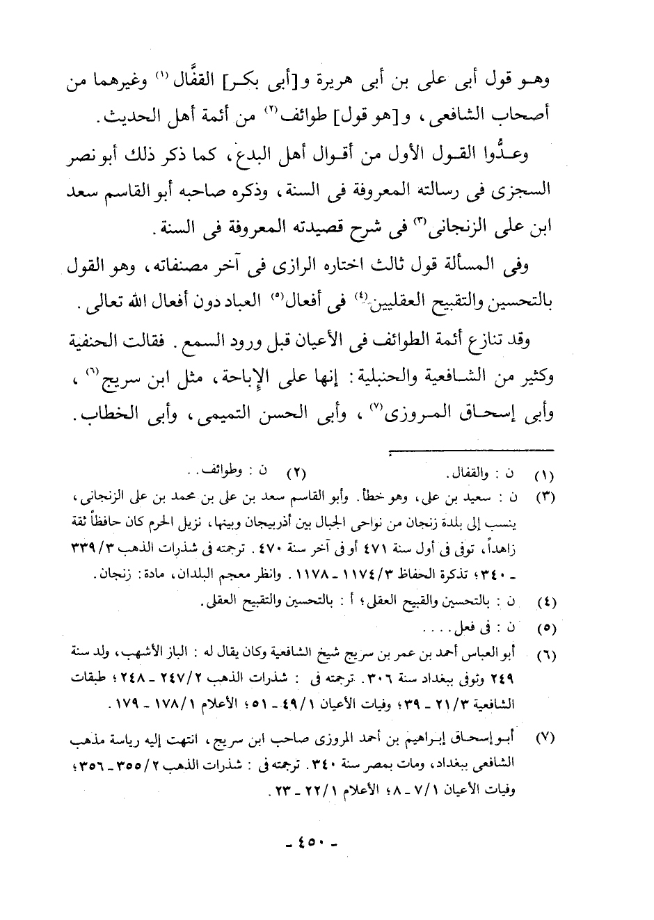 (¬4) ن: بِالتَّحْسِينِ وَالْقَبِيحِ الْعَقْلِيِّ؛ ا: بِالتَّحْسِينِ وَالتَّقْبِيحِ الْعَقْلِيِّ.