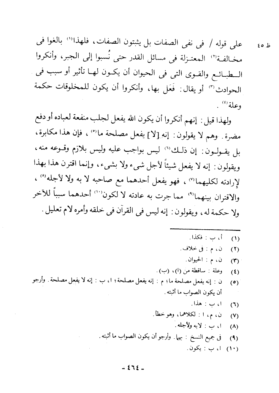 (¬5) ن: إِنَّهُ يَفْعَلُ مَصْلَحَةً مَا؛ م: إِنَّهُ يَفْعَلُ مَصْلَحَةً؛ أ، ب: إِنَّهُ لَا يَفْعَلُ مَصْلَحَةً. وَأَرْجُو أَنْ يَكُونَ الصَّوَابُ مَا أَثْبَتَهُ.