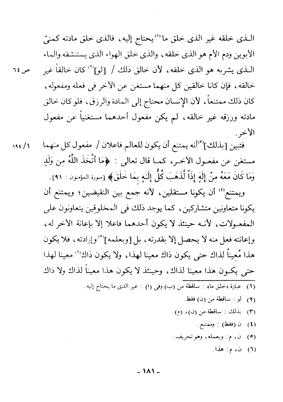 (¬1) عِبَارَةُ " خَلْقَ مَا ": سَاقِطَةٌ مِنْ (ب) وَفِي (أ) : غَيْرَ الَّذِي مَا يَحْتَاجُ إِلَيْهِ.