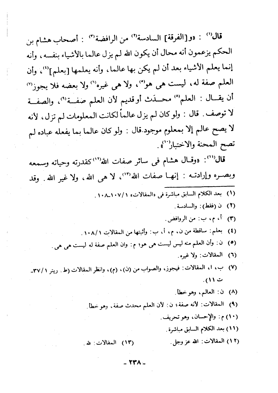 (¬7) ب، أ، الْمَقَالَاتِ: فَيَجُوزُ، وَالصَّوَابُ مِنْ (ن) ، (م) ، وَانْظُرِ الْمَقَالَاتِ (ط. رَيْتَرْ 1/37 - ت 11) .