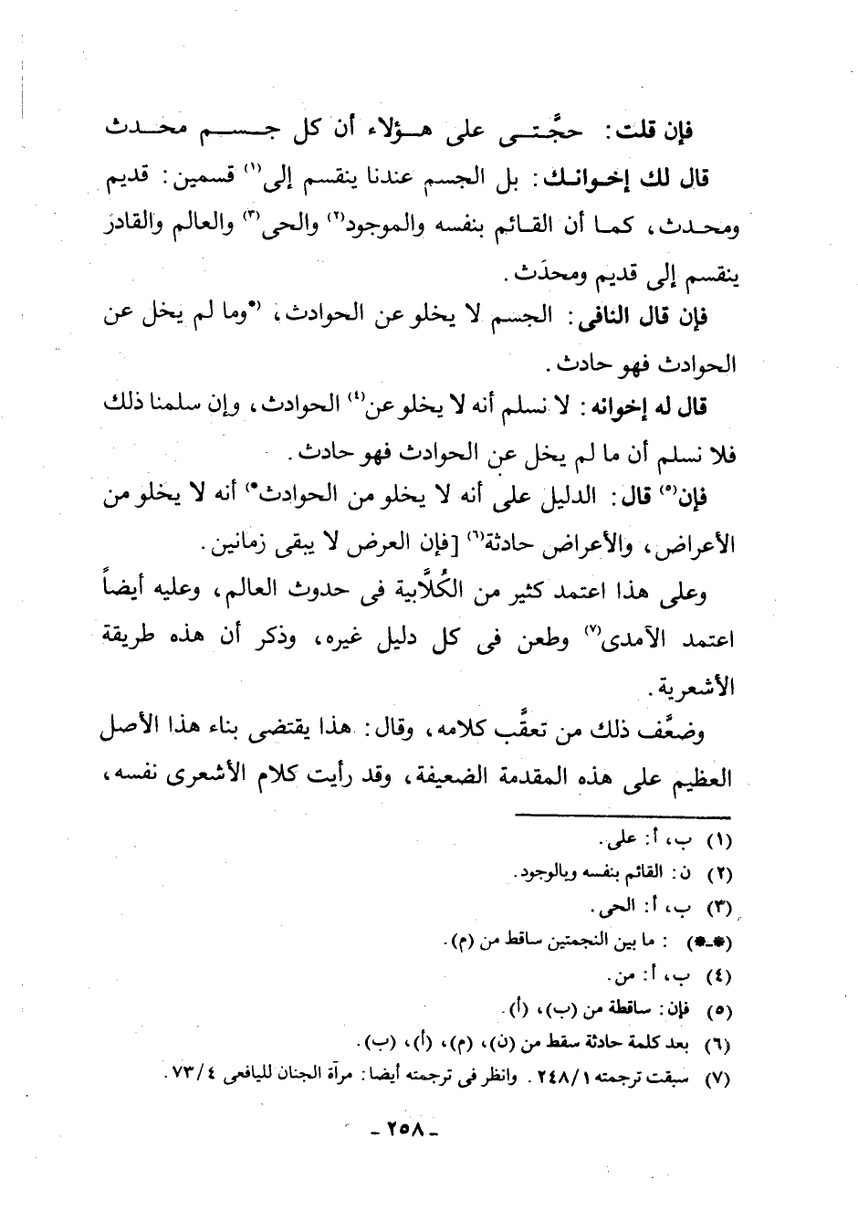 قَالَ لَهُ إِخْوَانُهُ: لَا نُسَلِّمُ أَنَّهُ لَا يَخْلُو عَنْ (¬4) الْحَوَادِثِ، وَإِنْ سَلَّمْنَا ذَلِكَ فَلَا نُسَلِّمُ أَنَّ مَا لَمْ يَخْلُ عَنِ الْحَوَادِثِ فَهُوَ حَادِثٌ.