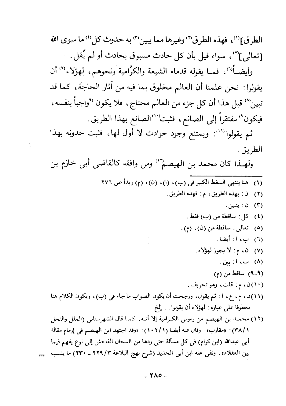 (¬1) هُنَا يَنْتَهِي السَّقْطُ الْكَبِيرُ فِي (ب) ، (أ) ، (ن) ، (م) وَبَدَأَ ص 276