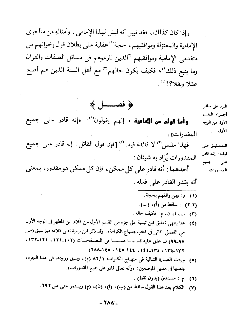 (¬5) وَرَدَتِ الْعِبَارَةُ التَّالِيَةُ فِي مِنْهَاجِ الْكَرَامَةِ 1/82 (م) ، وَسَبَقَ وُرُودُهَا فِي هَذَا الْجُزْءِ، وَنَصُّهَا فِي هَذَيْنِ الْمَوْضِعَيْنِ: " وَأَنَّهُ تَعَالَى قَادِرٌ عَلَى جَمِيعِ الْمَقْدُورَاتِ ".: " إِنَّهُ قَادِرٌ عَلَى جَمِيعِ الْمُقَدَّرَاتِ "