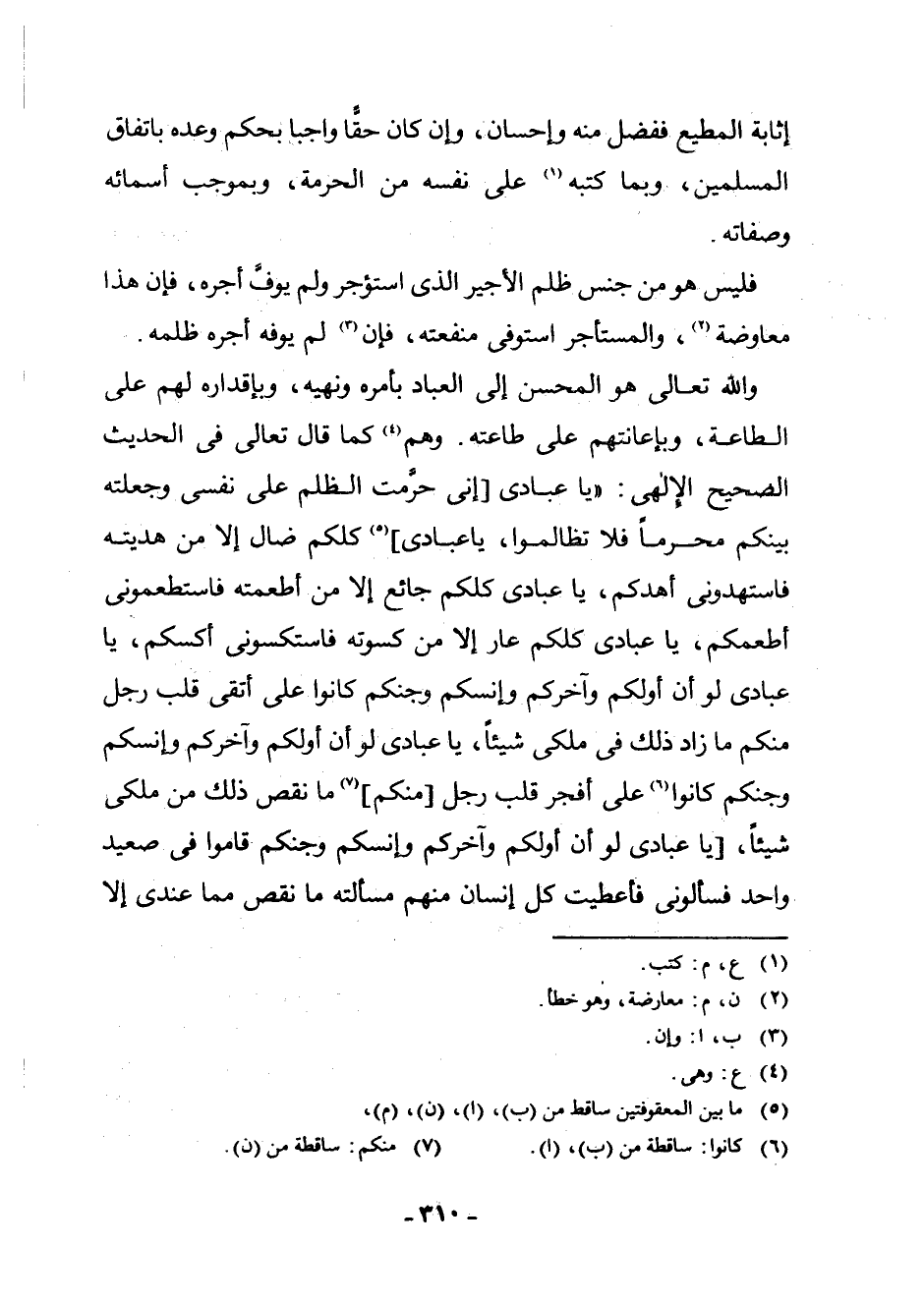 وَاللَّهُ تَعَالَى هُوَ الْمُحْسِنُ إِلَى الْعِبَادِ بِأَمْرِهِ وَنَهْيِهِ، وَبِإِقْدَارِهِ لَهُمْ عَلَى الطَّاعَةِ، وَبِإِعَانَتِهِمْ عَلَى طَاعَتِهِ. وَهُمْ (¬4) كَمَا قَالَ تَعَالَى فِي الْحَدِيثِ الصَّحِيحِ الْإِلَهِيِّ: " «يَا عِبَادِي [إِنِّي حَرَّمْتُ الظُّلْمَ عَلَى نَفْسِي وَجَعَلْتُهُ بَيْنَكُمْ مُحَرَّمًا فَلَا تَظَالَمُوا، يَا عِبَادِي] (¬5) كُلُّكُمْ ضَالٌّ إِلَّا مَنْ هَدَيْتُهُ فَاسْتَهْدُونِي أَهْدِكُمْ، يَا عِبَادِي كُلُّكُمْ جَائِعٌ إِلَّا مَنْ أَطْعَمْتُهُ فَاسْتَطْعِمُونِي أُطْعِمْكُمْ، يَا عِبَادِي كُلُّكُمْ عَارٍ إِلَّا مَنْ كَسَوْتُهُ فَاسْتَكْسُونِي أَكْسُكُمْ، يَا عِبَادِي لَوْ أَنَّ أَوَّلَكُمْ وَآخِرَكُمْ وَإِنْسَكُمْ وَجِنَّكُمْ كَانُوا عَلَى أَتْقَى قَلْبِ رَجُلٍ مِنْكُمْ مَا زَادَ ذَلِكَ فِي مُلْكِي شَيْئًا، يَا عِبَادِي لَوْ أَنَّ أَوَّلَكُمْ وَآخِرَكُمْ وَإِنْسَكُمْ وَجِنَّكُمْ كَانُوا (¬6) عَلَى أَفْجَرِ قَلْبِ رَجُلٍ [مِنْكُمْ] (¬7) مَا نَقَصَ ذَلِكَ مِنْ مُلْكِي شَيْئًا، [يَا عِبَادِي لَوْ أَنَّ أَوَّلَكُمْ وَآخِرَكُمْ وَإِنْسَكُمْ وَجِنَّكُمْ قَامُوا فِي صَعِيدٍ وَاحِدٍ فَسَأَلُونِي فَأَعْطَيْتُ كُلَّ إِنْسَانٍ مِنْهُمْ مَسْأَلَتَهُ مَا نَقَصَ مِمَّا عِنْدِي إِلَّا