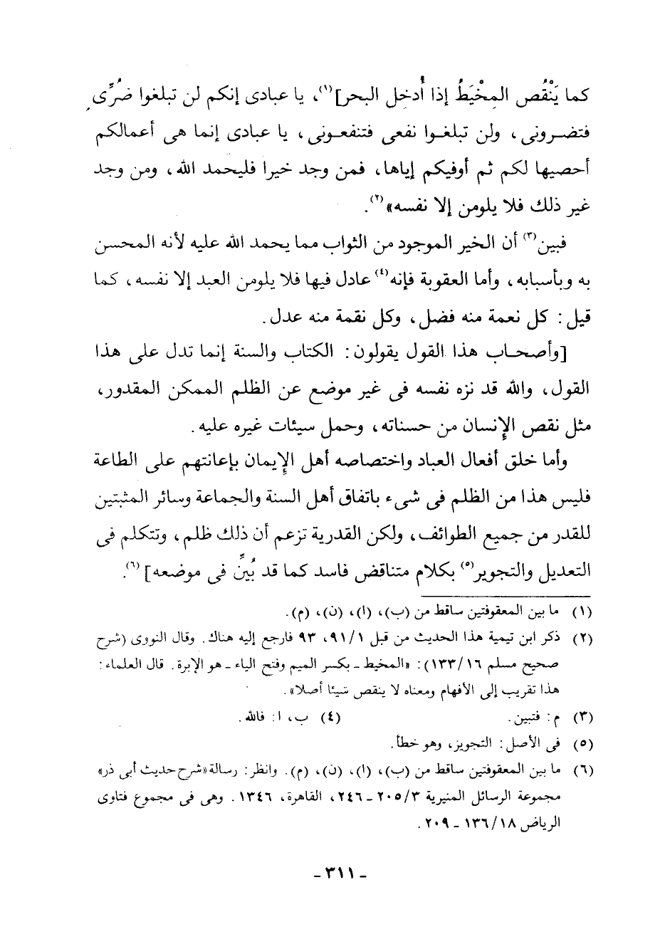 (¬6) مَا بَيْنَ الْمَعْقُوفَتَيْنِ سَاقِطٌ مِنْ (ب) ، (أ) ، (ن) ، (م) . وَانْظُرْ: رِسَالَةَ " شَرْحِ حَدِيثِ أَبِي ذَرٍّ " مَجْمُوعَةَ الرَّسَائِلِ الْمُنِيرِيَّةِ 3/205 - 246، الْقَاهِرَةِ، 1346. وَهِيَ فِي مَجْمُوعِ فَتَاوَى الرِّيَاضِ 18/136 - 209.