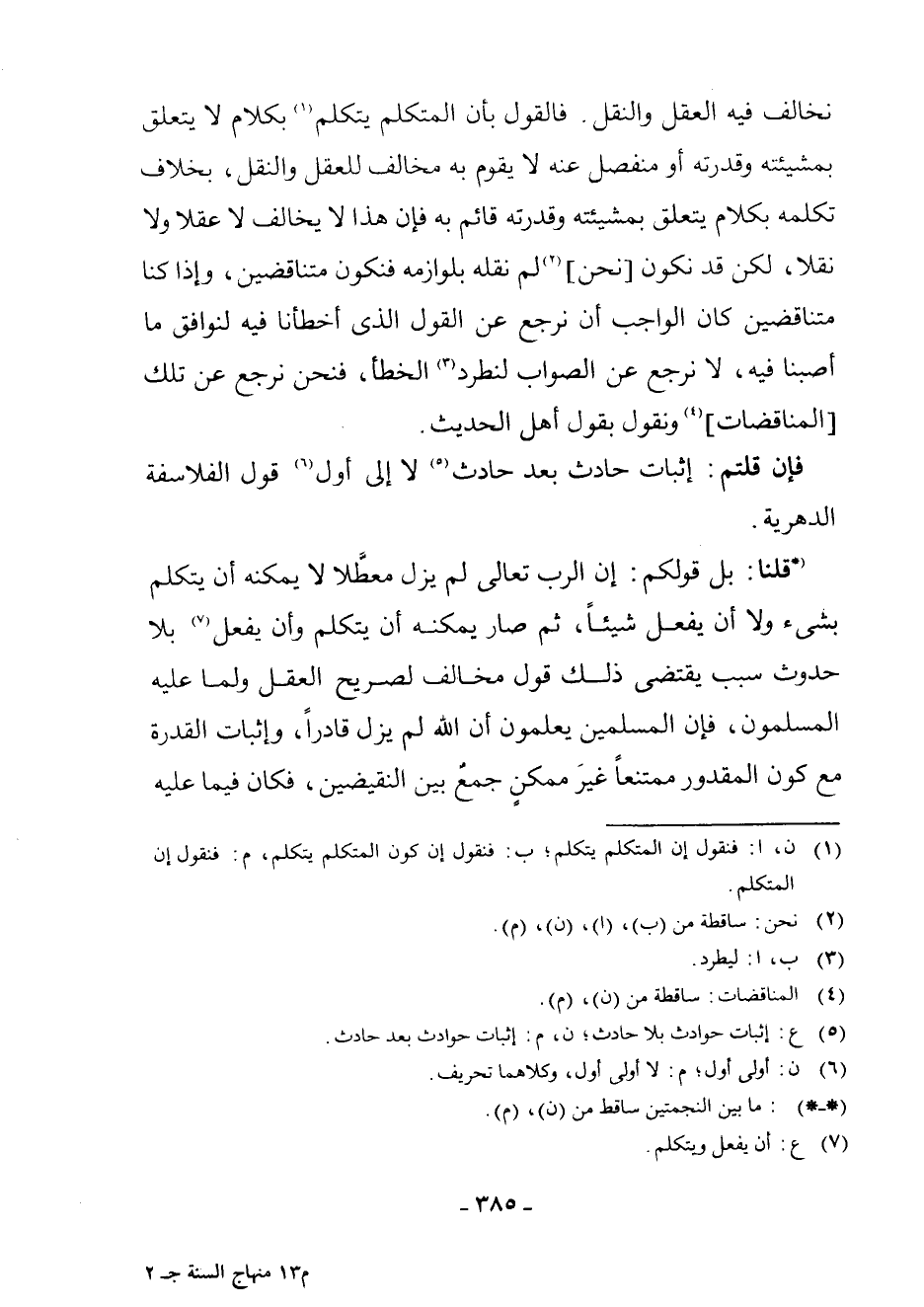 (¬1) ن، ا: فَنَقُولُ إِنَّ الْمُتَكَلِّمَ يَتَكَلَّمُ ; ب: فَنَقُولُ إِنَّ كَوْنَ الْمُتَكَلِّمِ يَتَكَلَّمُ، م: فَنَقُولُ إِنَّ الْمُتَكَلِّمَ.