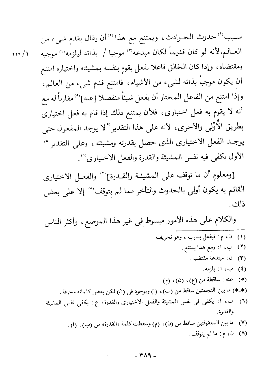 (¬7) ب، ا: يَكْفِي فِي نَفْسِ الْمَشِيئَةِ وَالْفِعْلِ الِاخْتِيَارِيِّ وَالْقُدْرَةِ ; ع: يَكْفِي نَفْسُ الْمَشِيئَةِ وَالْقُدْرَةِ.