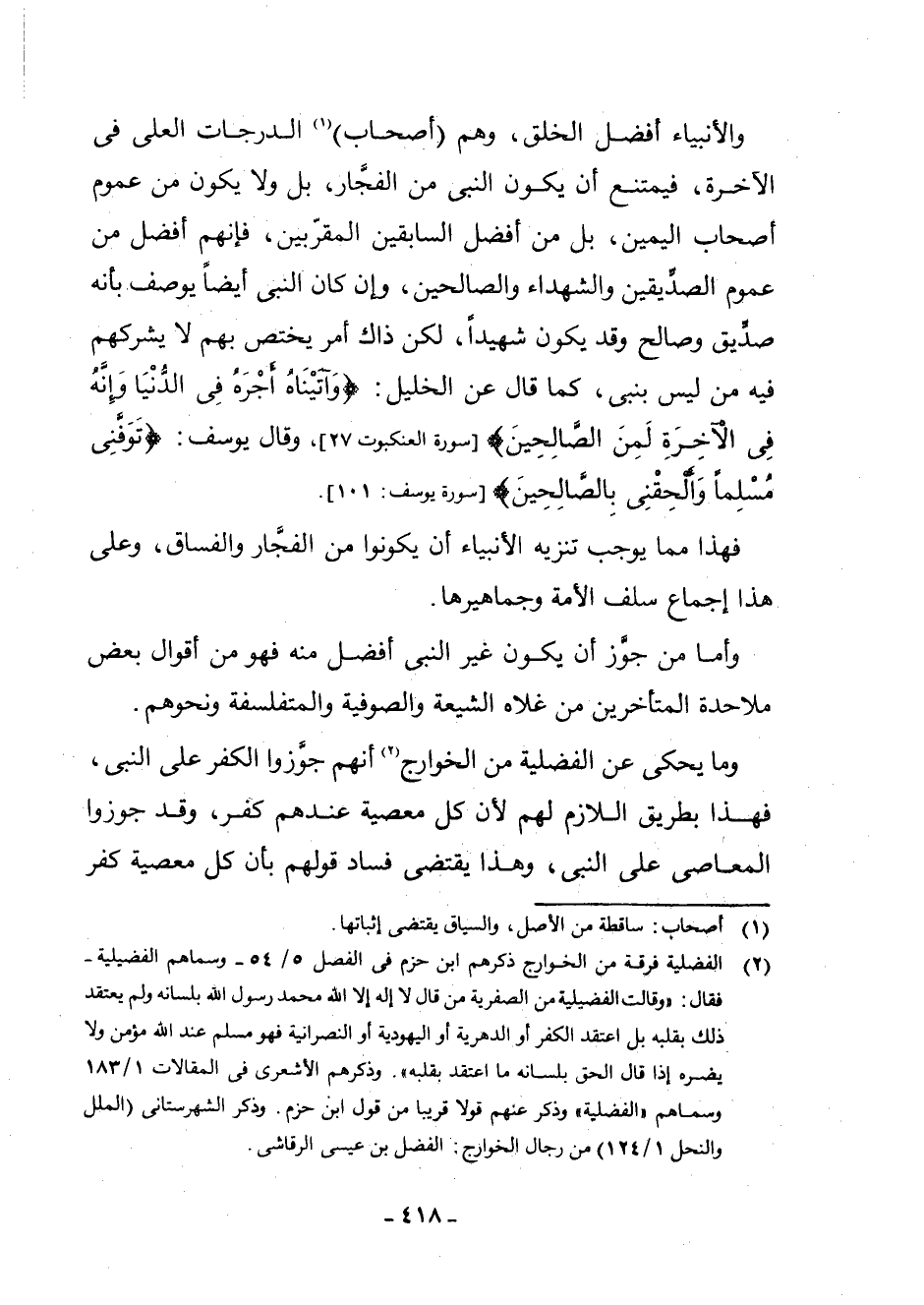 وَأَمَّا مَنْ جَوَّزَ أَنْ يَكُونَ غَيْرُ النَّبِيِّ أَفْضَلَ مِنْهُ فَهُوَ مِنْ أَقْوَالِ بَعْضِ مَلَاحِدَةِ الْمُتَأَخِّرِينَ مِنْ غُلَاةِ الشِّيعَةِ وَالصُّوفِيَّةِ وَالْمُتَفَلْسِفَةِ وَنَحْوِهِمْ.