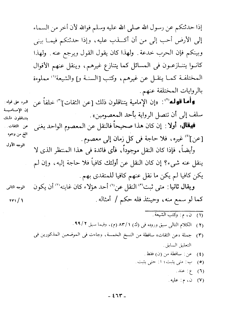 إن كان هذا صحيحا فالنقل عن المعصوم الواحد يغنى عن غيره فلا حاجة في كل زمان إلى معصوم