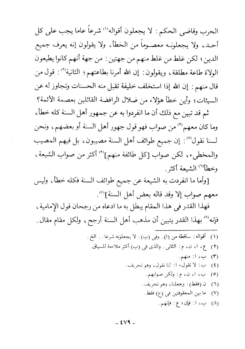 ثُمَّ قَدْ تَبَيَّنَ مَعَ ذَلِكَ أَنَّ مَا انْفَرَدُوا بِهِ عَنْ جُمْهُورِ أَهْلِ السُّنَّةِ كُلُّهُ خَطَأٌ، وَمَا كَانَ مَعَهُمْ (¬3) مِنْ صَوَابٍ فَهُوَ قَوْلُ جُمْهُورِ أَهْلِ السُّنَّةِ أَوْ بَعْضِهِمْ، وَنَحْنُ لَسْنَا نَقُولُ (¬4) : إِنَّ جَمِيعَ طَوَائِفِ أَهْلِ السُّنَّةِ مُصِيبُونَ، بَلْ فِيهِمُ الْمُصِيبُ وَالْمُخْطِئُ، لَكِنَّ صَوَابَ [كُلِّ طَائِفَةٍ مِنْهُمْ] (¬5) أَكْثَرُ مِنْ صَوَابِ الشِّيعَةِ، وَخَطَأَ (¬6) الشِّيعَةِ أَكْثَرُ.