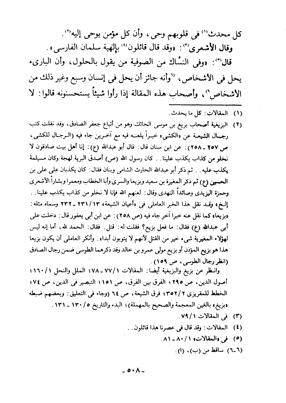 وَقَالَ الْأَشْعَرِيُّ (¬3) : " وَقَدْ قَالَ قَائِلُونَ (¬4) بِإِلَهِيَّةِ سَلْمَانَ الْفَارِسِيِّ ".