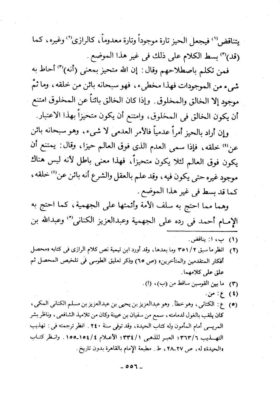 (¬2) انْظُرْ مَا سَبَقَ 2/351 وَمَا بَعْدَهَا، وَقَدْ أَوْرَدَ ابْنُ تَيْمِيَّةَ نَصَّ كَلَامِ الرَّازِيِّ فِي كِتَابِهِ " مُحَصِّلِ أَفْكَارِ الْمُتَقَدِّمِينَ وَالْمُتَأَخِّرِينَ " (ص [0 - 9] 5) وَذَكَرَ تَعْلِيقَ الطُّوسِيِّ فِي تَلْخِيصِ الْمُحَصِّلِ ثُمَّ عَلَّقَ عَلَى كَلَامِهِمَا.