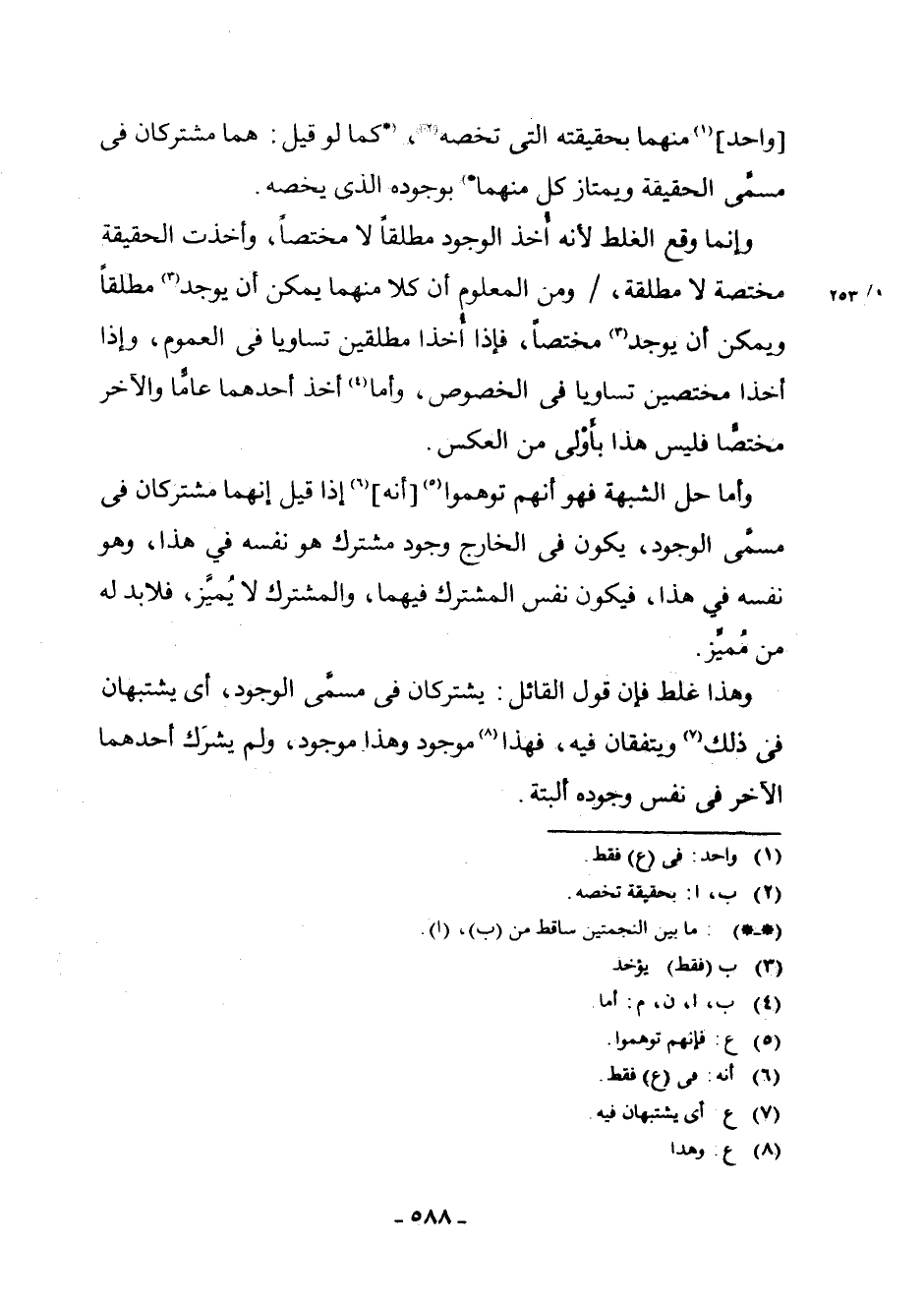 [وَاحِدٍ] (¬1) مِنْهُمَا بِحَقِيقَتِهِ الَّتِي تَخُصُّهُ (¬2) ، (* كَمَا لَوْ قِيلَ: هُمَا مُشْتَرِكَانِ فِي مُسَمَّى الْحَقِيقَةِ وَيَمْتَازُ كُلٌّ مِنْهُمَا *) (¬3) بِوُجُودِهِ الَّذِي يَخُصُّهُ.