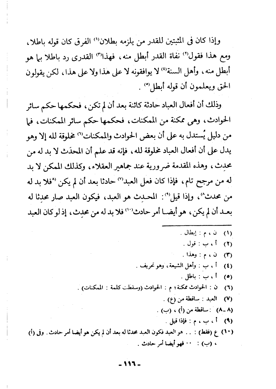 (¬6) ن: الْحَوَادِثِ مُمْكِنَةٌ ; م: الْحَوَادِثُ (وَسَقَطَتْ كَلِمَةُ: الْمُمْكِنَاتِ) .