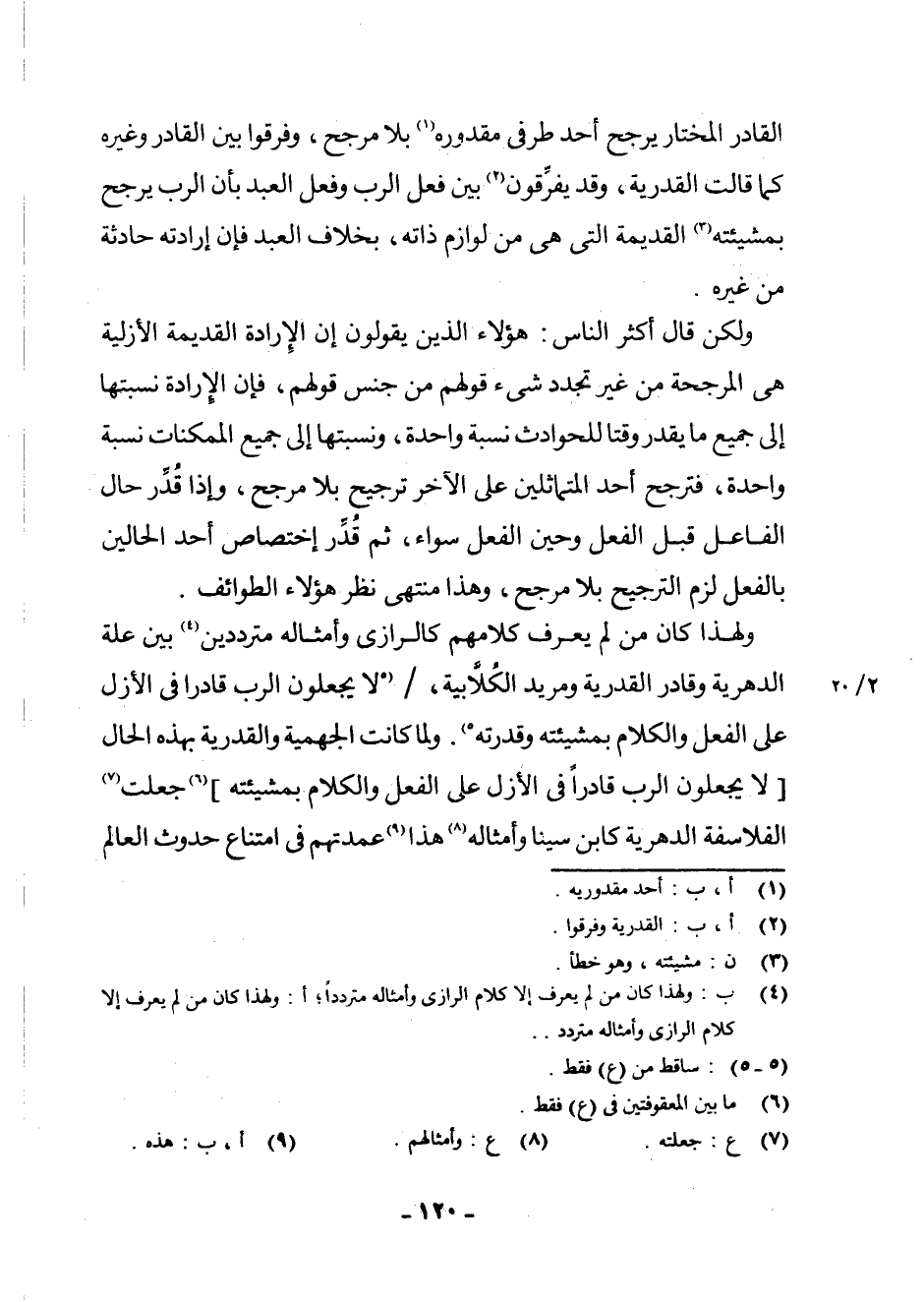 وَلِهَذَا كَانَ مَنْ لَمْ يَعْرِفْ كَلَامَهُمْ كَالرَّازِيِّ وَأَمْثَالِهِ مُتَرَدِّدِينَ (¬4) بَيْنَ عِلَّةِ الدَّهْرِيَّةِ وَقَادِرِ الْقَدَرِيَّةِ وَمُرِيدِ الْكُلَّابِيَّةِ، (¬5) لَا يَجْعَلُونَ الرَّبَّ قَادِرًا فِي الْأَزَلِ عَلَى الْفِعْلِ وَالْكَلَامِ بِمَشِيئَتِهِ وَقُدْرَتِهِ (¬6) . وَلَمَّا كَانَتِ الْجَهْمِيَّةُ وَالْقَدَرِيَّةُ بِهَذِهِ الْحَالِ [لَا يَجْعَلُونَ الرَّبَّ قَادِرًا فِي الْأَزَلِ عَلَى الْفِعْلِ وَالْكَلَامِ بِمَشِيئَتِهِ] (¬7) جَعَلَتْ (¬8) الْفَلَاسِفَةُ الدَّهْرِيَّةُ كَابْنِ سِينَا وَأَمْثَالِهِ (¬9) هَذَا (¬10) عُمْدَتَهُمْ فِي امْتِنَاعِ حُدُوثِ الْعَالَمِ