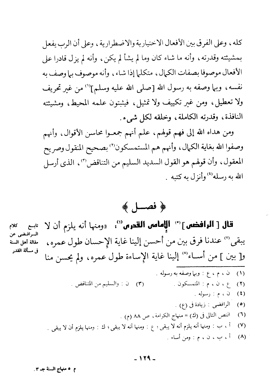 (¬5) الرَّافِضِيُّ: زِيَادَةٌ فِي (ع) . الْإِمَامِيُّ الْقَدَرِيُّ النَّصُّ التَّالِي فِي (ك) مِنْهَاجُ الْكَرَامَةِ ص [0 - 9] 8 (م) .