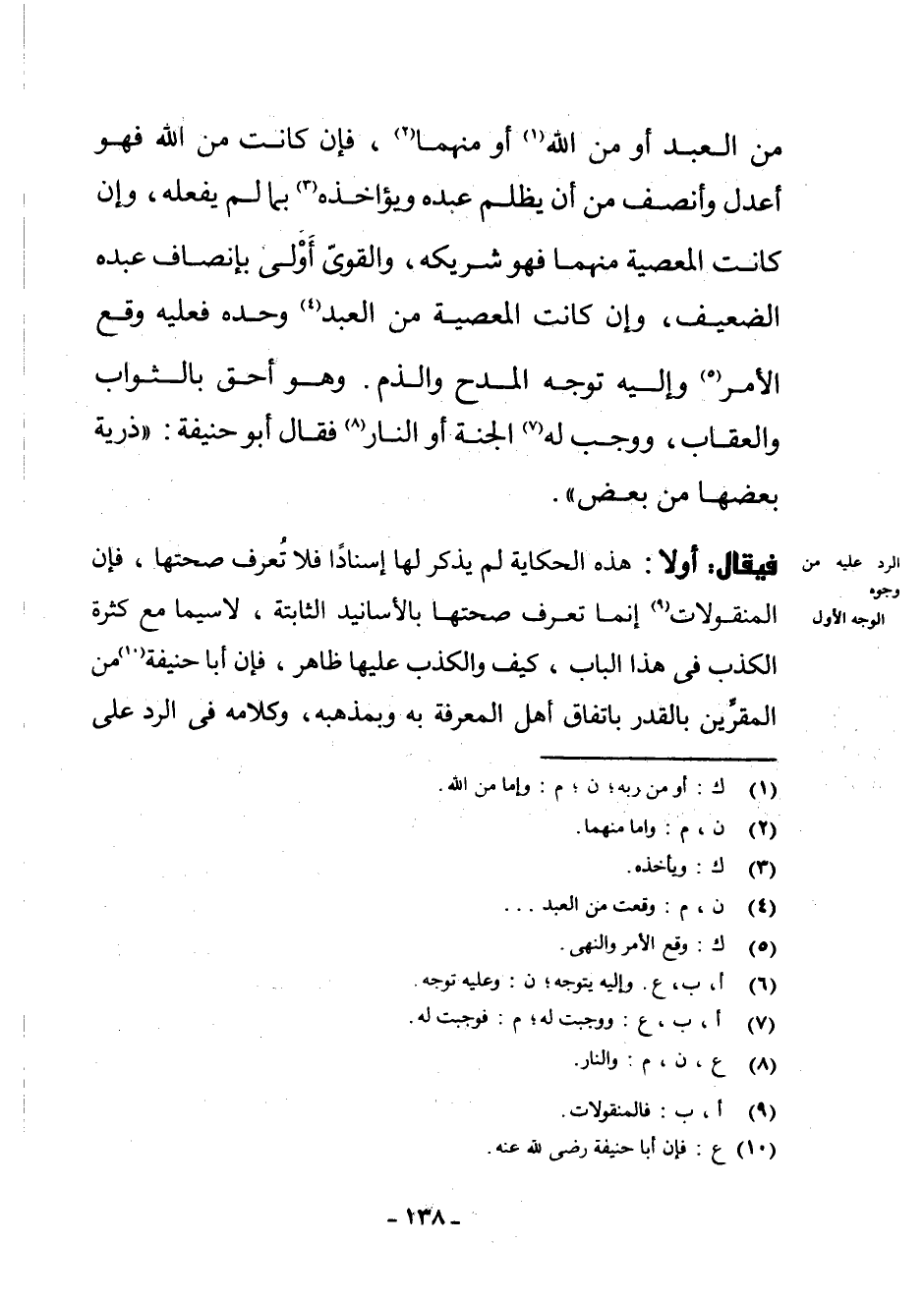 فَيُقَالُ: أَوَّلًا: هَذِهِ الْحِكَايَةُ لَمْ يَذْكُرْ لَهَا إِسْنَادًا فَلَا تُعْرَفُ صِحَّتُهَا، فَإِنَّ الْمَنْقُولَاتِ (¬9) إِنَّمَا تُعْرَفُ صِحَّتُهَا بِالْأَسَانِيدِ الثَّابِتَةِ، لَا سِيَّمَا مَعَ كَثْرَةِ الْكَذِبِ فِي هَذَا الْبَابِ، كَيْفَ وَالْكَذِبُ عَلَيْهَا ظَاهِرٌ، فَإِنَّ أَبَا حَنِيفَةَ (¬10) مِنَ الْمُقِرِّينَ بِالْقَدَرِ بِاتِّفَاقِ أَهْلِ الْمَعْرِفَةِ بِهِ وَبِمَذْهَبِهِ، وَكَلَامُهُ فِي الرَّدِّ عَلَى