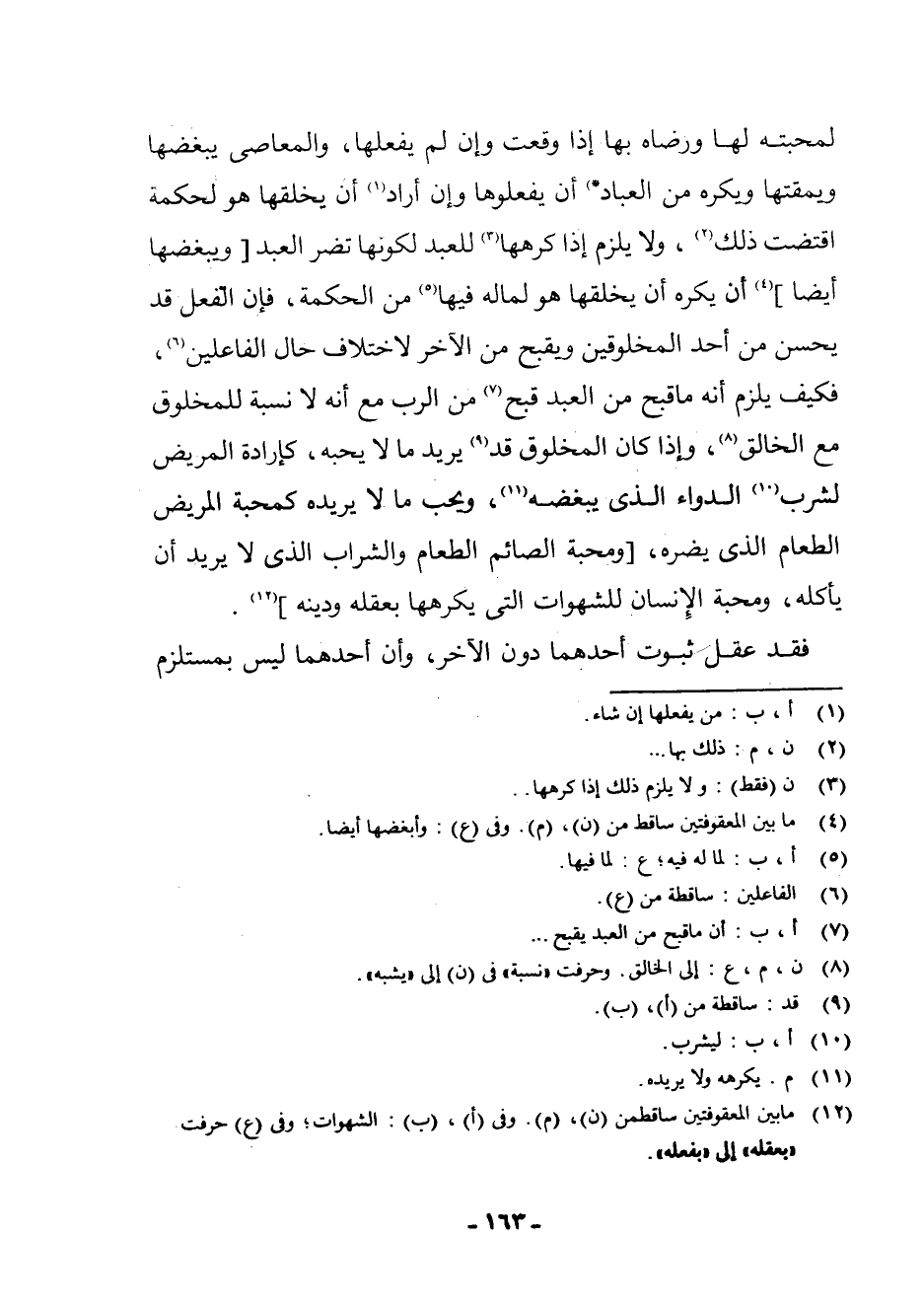 (¬13) مَا بَيْنَ الْمَعْقُوفَتَيْنِ سَاقِطٌ مِنْ (ن) ، (م) ، وَفِي (أ) ، (ب) : الشَّهَوَاتِ، وَفِي (ع) حُرِّفَتْ بِعَقْلِهِ إِلَى بِفِعْلِهِ.