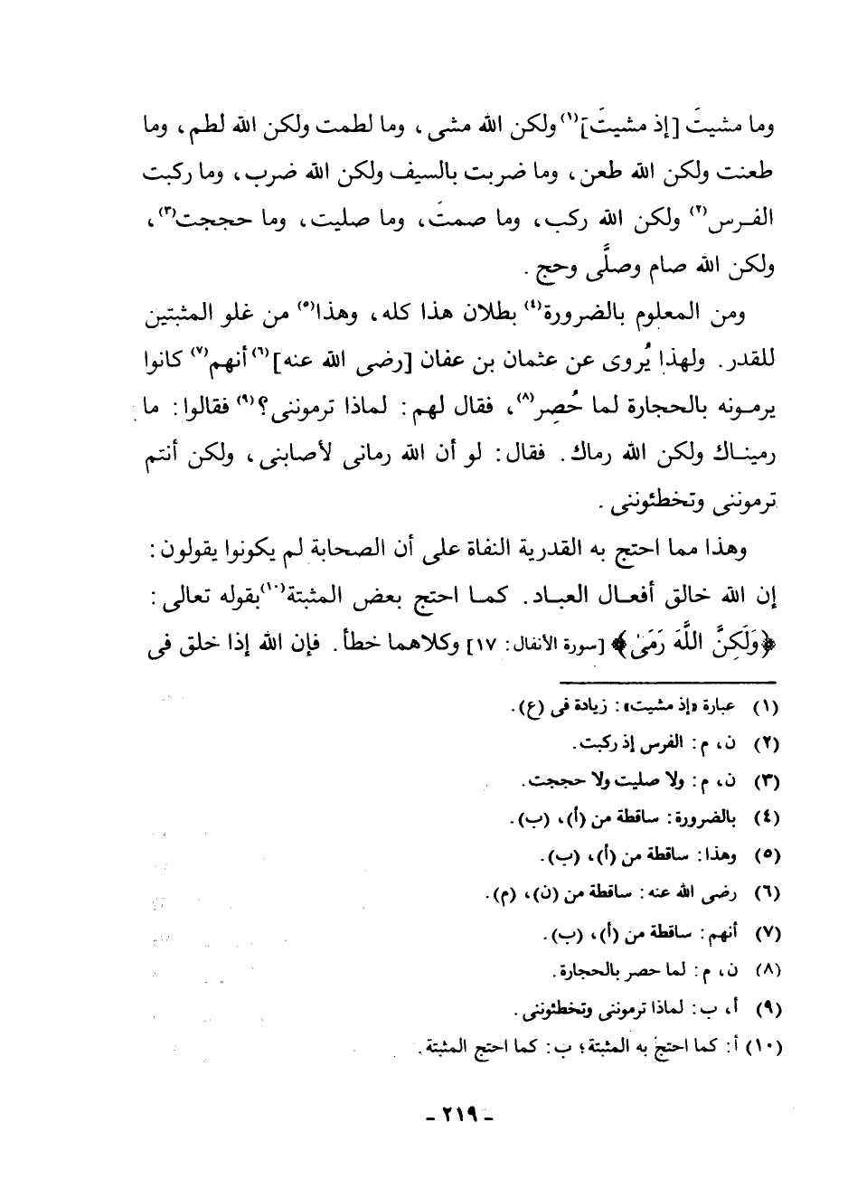 (¬10) أ: كَمَا احْتَجَّ بِهِ الْمُثْبِتَةُ ; ب: كَمَا احْتَجَّ الْمُثْبِتَةُ.