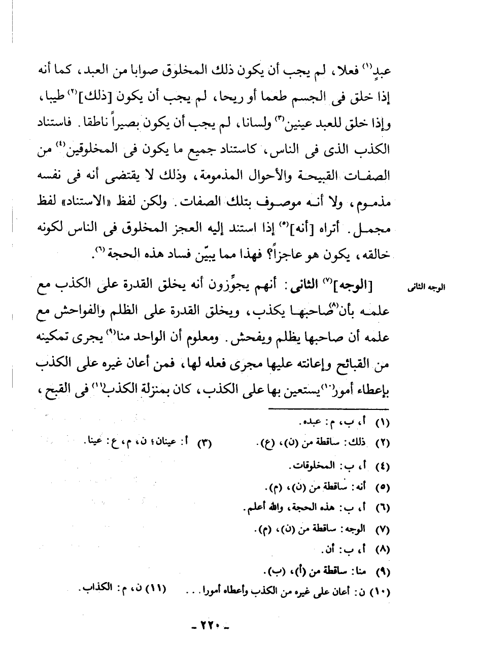 [الْوَجْهُ] (¬7) الثَّانِي: أَنَّهُمْ يُجَوِّزُونَ أَنَّهُ يَخْلُقُ الْقُدْرَةَ عَلَى الْكَذِبِ مَعَ عِلْمِهِ بِأَنَّ (¬8) صَاحِبَهَا يَكْذِبُ، وَيَخْلُقُ الْقُدْرَةَ عَلَى الظُّلْمِ وَالْفَوَاحِشِ مَعَ عِلْمِهِ أَنَّ صَاحِبَهَا يَظْلِمُ وَيُفْحِشُ. وَمَعْلُومٌ أَنَّ الْوَاحِدَ مِنَّا (¬9) يَجْرِي تَمْكِينُهُ مِنَ الْقَبَائِحِ وَإِعَانَتُهُ عَلَيْهَا مَجْرَى فِعْلِهِ لَهَا، فَمَنْ أَعَانَ غَيْرَهُ عَلَى الْكَذِبِ بِإِعْطَاءِ أُمُورٍ (¬10) يَسْتَعِينُ بِهَا عَلَى الْكَذِبِ، كَانَ بِمَنْزِلَةِ الْكَذِبِ (¬11) فِي الْقُبْحِ،