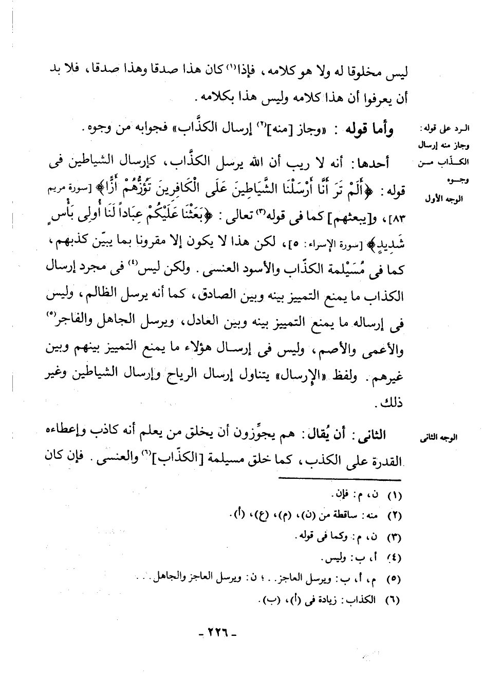 الثَّانِي: أَنْ يُقَالَ: هُمْ يُجَوِّزُونَ أَنْ يَخْلُقَ مَنْ يَعْلَمُ أَنَّهُ كَاذِبٌ وَإِعْطَاءَهُ الْقُدْرَةَ عَلَى الْكَذِبِ، كَمَا خَلَقَ مُسَيْلِمَةَ [الْكَذَّابَ] (¬6) وَالْعَنْسِيَّ. فَإِنْ كَانَ