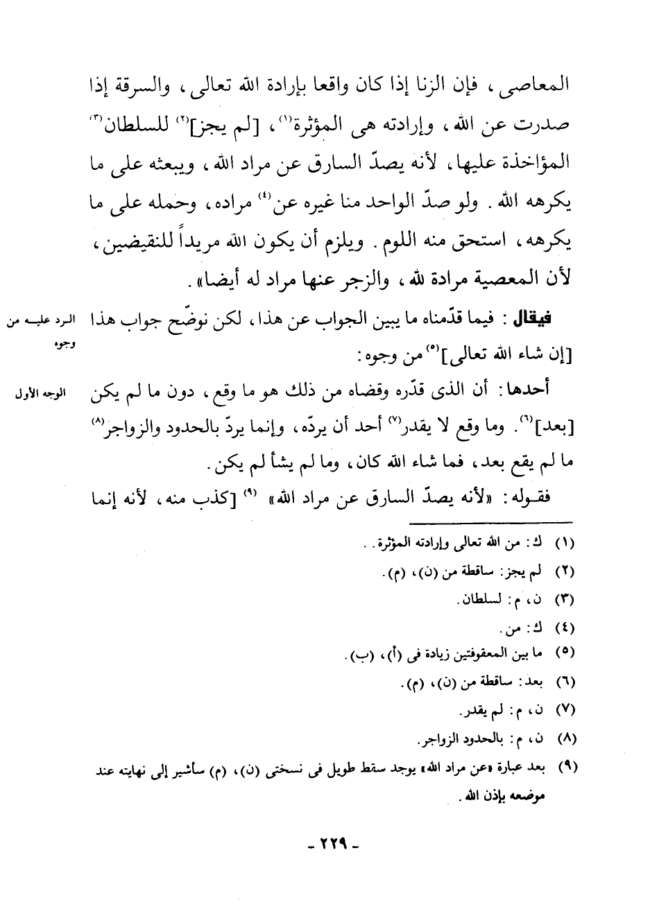 (¬9) بَعْدَ عِبَارَةِ " عَنْ مُرَادِ اللَّهِ " يُوجَدُ سَقْطٌ طَوِيلٌ فِي نُسْخَتَيْ (ن) (م) سَأُشِيرُ إِلَى نِهَايَتِهِ عِنْدَ مَوْضِعِهِ بِإِذْنِ اللَّهِ.