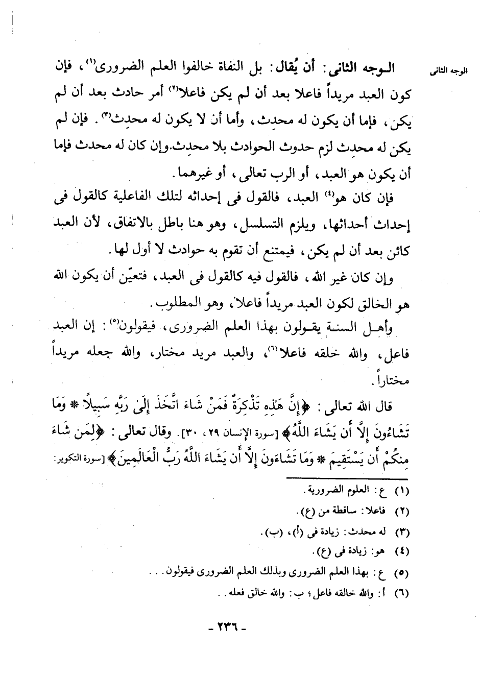 (¬6) أ: وَاللَّهُ خَالِقُهُ فَاعِلٌ، ب: وَاللَّهُ خَالِقُ فِعْلِهِ.