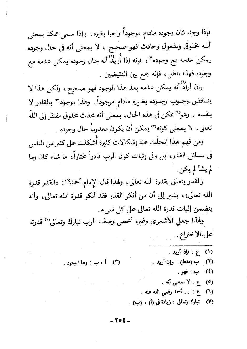 وَإِنْ أَرَادَ (¬3) أَنَّهُ يُمْكِنُ عَدَمُهُ بَعْدَ هَذَا الْوُجُودِ فَهُوَ صَحِيحٌ، وَلَكِنَّ هَذَا لَا يُنَاقِضُ وُجُوبَ وَجُودِهِ بِغَيْرِهِ مَا دَامَ مَوْجُودًا وَهَذَا مَوْجُودٌ (¬4) بِالْقَادِرِ لَا بِنَفَسِهِ وَهُوَ مُمْكِنٌ (¬5) فِي هَذِهِ الْحَالِ بِمَعْنَى أَنَّهُ مُحْدَثٌ مَخْلُوقٌ مُفْتَقِرٌ إِلَى اللَّهِ تَعَالَى لَا بِمَعْنَى كَوْنِهِ (¬6) يُمْكِنُ أَنْ يَكُونَ مَعْدُومًا حَالَ وُجُودِهِ.