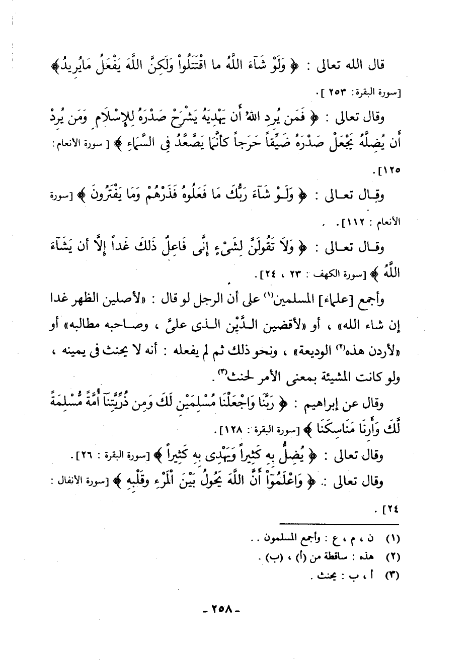 قَالَ اللَّهُ تَعَالَى: {وَلَوْ شَاءَ اللَّهُ مَا اقْتَتَلُوا وَلَكِنَّ اللَّهَ يَفْعَلُ مَا يُرِيدُ} [سُورَةُ الْبَقَرَةِ: 253] .