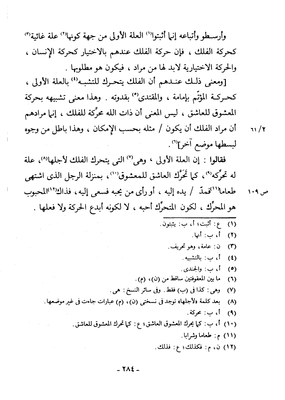 (¬8) بَعْدَ كَلِمَةِ " لِأَجْلِهَا " تُوجَدُ فِي نُسْخَتَيْ (ن) ، (م) عِبَارَاتٌ جَاءَتْ فِي غَيْرِ مَوْضِعِهَا.